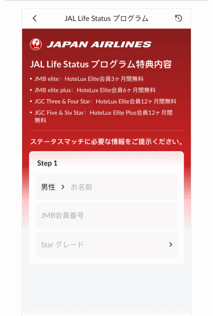 5つ星以上はエリートプラスステイタス永年無料とのことで、Hoteluxアプリをダウンロードし、アプリ経由で早速申請してみました!